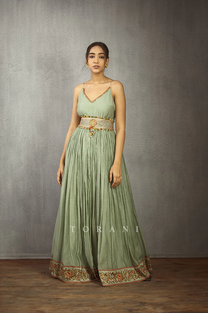 The Champa Sindhi Kasuti Kamarbandh is a unique and stylish accessory made from a combination of Chanderi and Cotton Silk fabrics. This two-toned green-colored kamarbandh is the perfect addition to your ethnic wardrobe. Its lightweight and breathable materials are designed for comfort, making it an ideal choice for any special occasion.