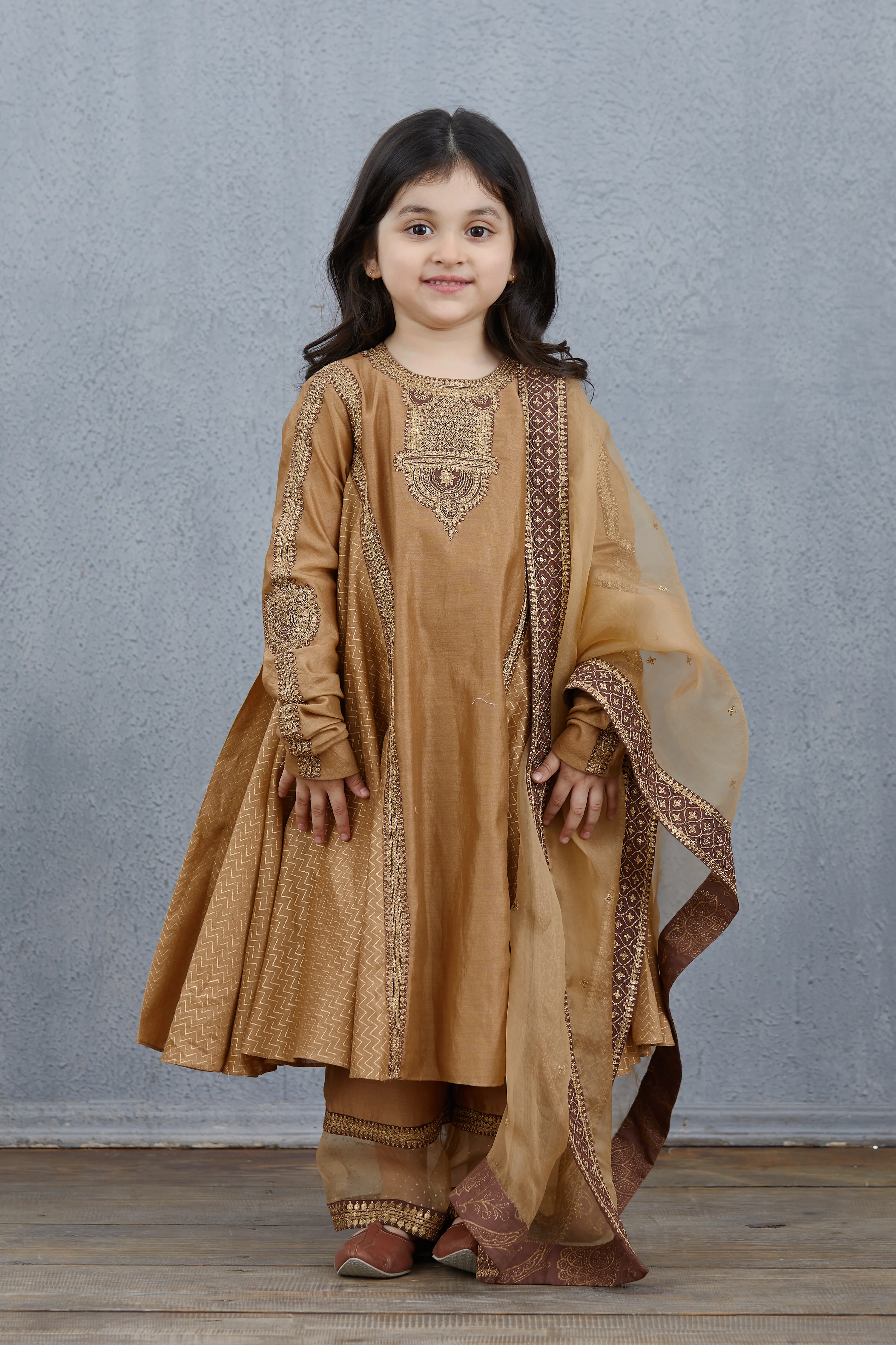 This exquisite Chandan Aarna Kurta Set features luxuriously soft Silk Organza and Handwoven Chanderi fabric. With an exquisite Aari Embroidery work, the set includes a Kurta, Pants and Odhani in a beautiful brown, making it a perfect choice for special occasions.