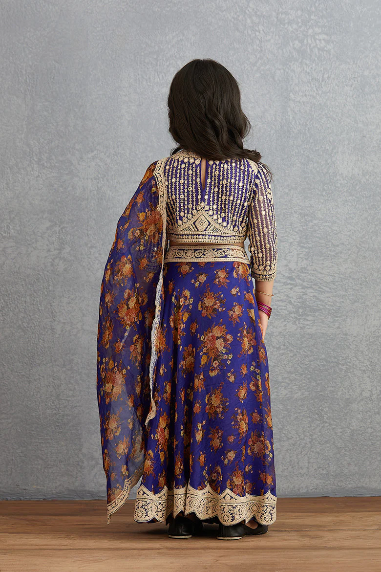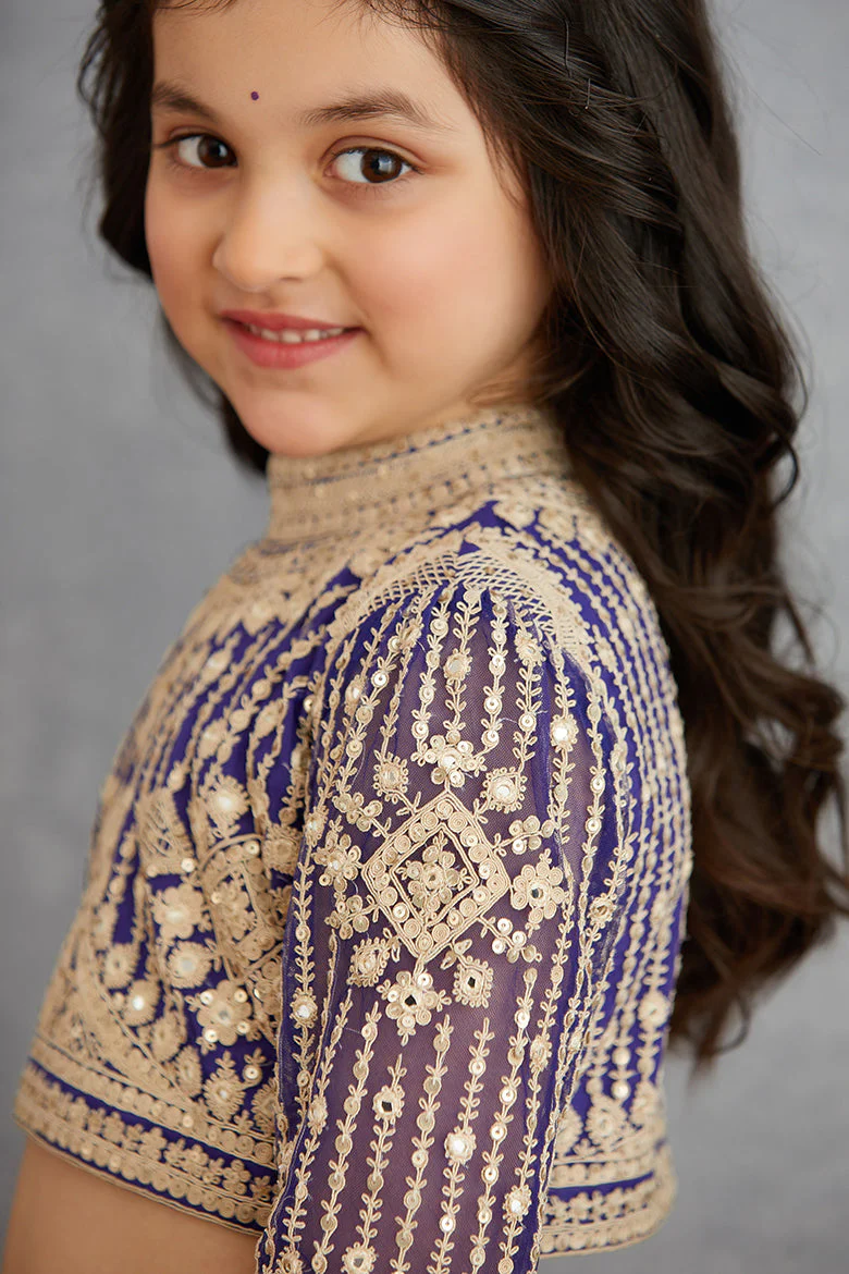 This gorgeous Jamuni Induma Lehenga Set features a delightful blend of Handwoven Chanderi, Cotton Silk and Silk Organza fabric in a majestic purple color. It is further enriched with exquisite Hand Embroidery and Dori Embroidery works. The set includes a Lehenga, Blouse, and Odhni. Perfect for any special occasion.