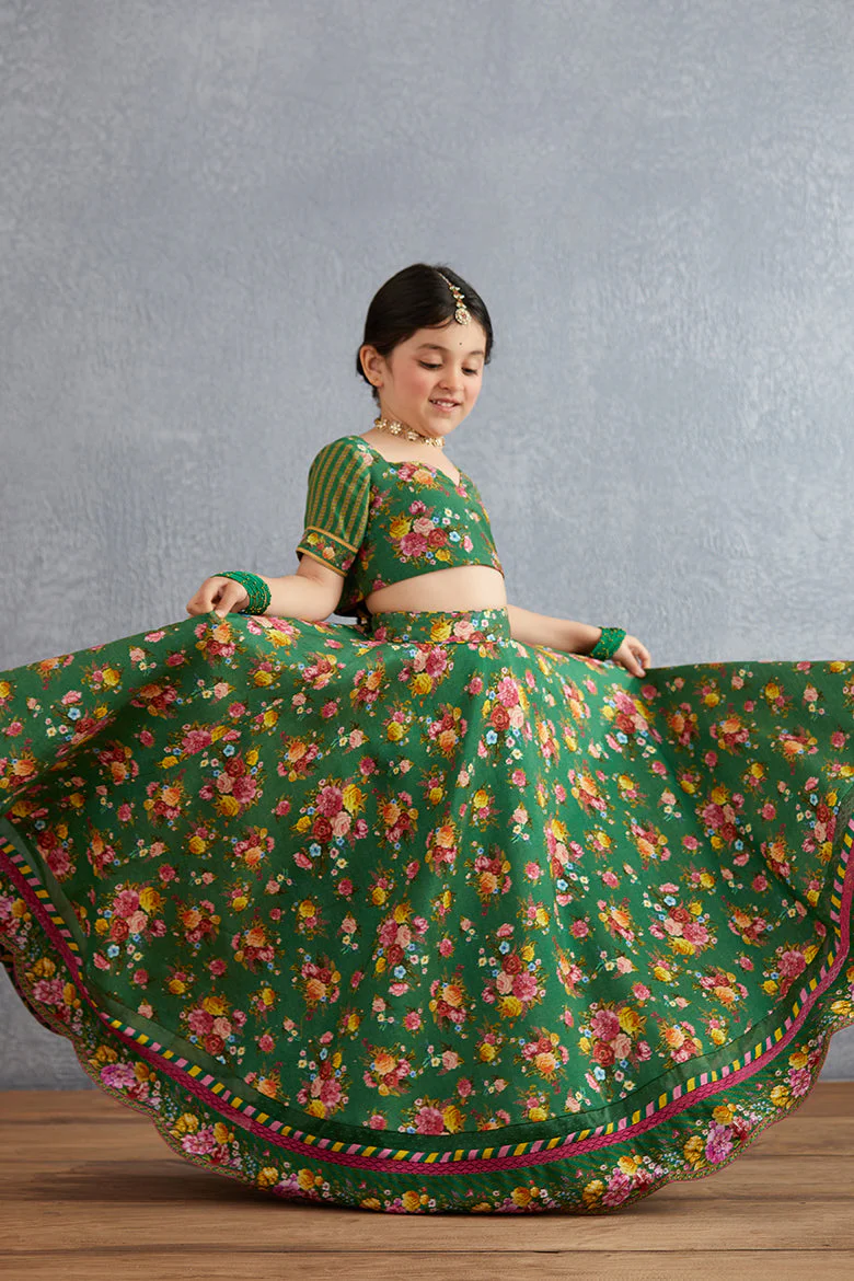 This Panna Mumtaz Lehenga Set is crafted using Handwoven Chanderi and Cotton Silk to ensure a truly luxurious experience. The eye-catching digital print and hand-block print brings elegance to the classic green color. Perfect for special occasions, the set includes a lehenga, blouse, and odhni.