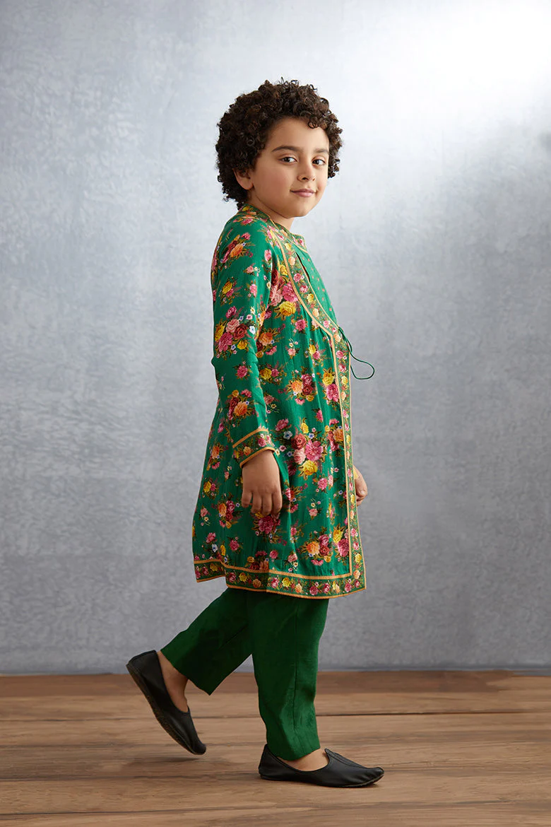 The Panna Naaz Kurta Set is a stylish and comfortable outfit for special occasions. The Handwoven Chanderi, Cotton Silk and Cotton Voile give it an air of sophisticated luxury. The green color and digital print ensure a bold statement. The set includes a Kurta and Pants for an effortlessly elegant look.