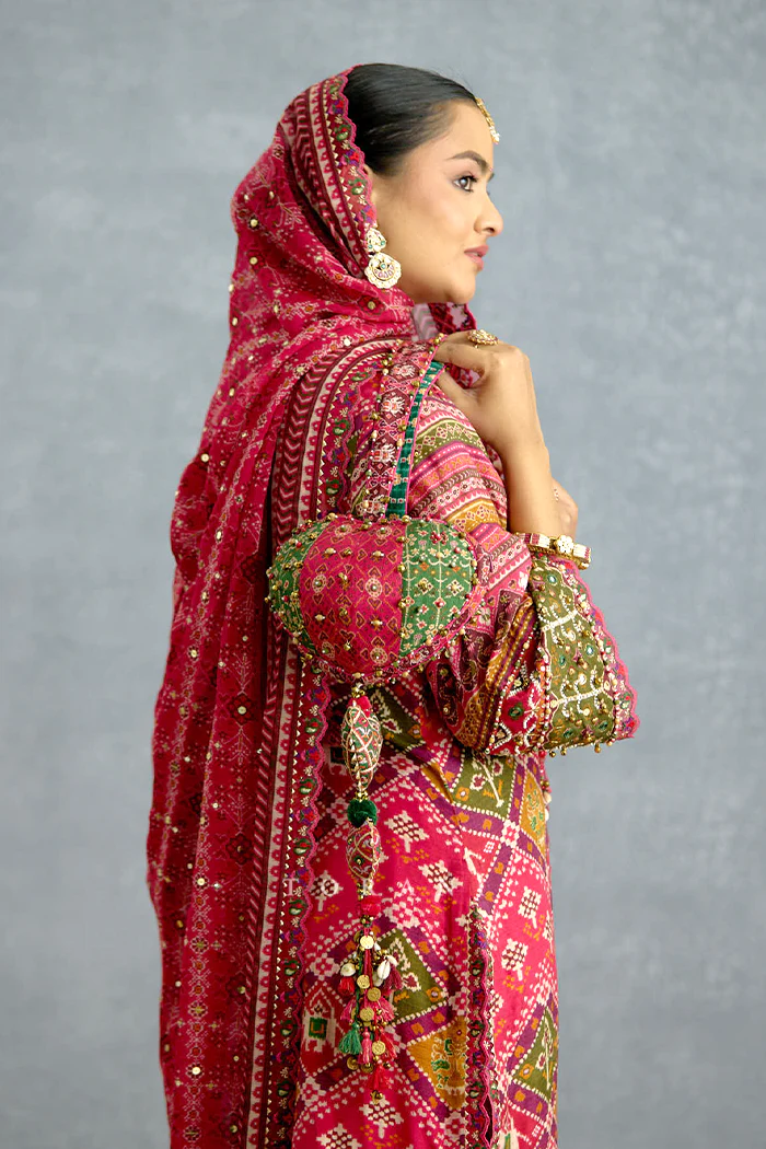 The Raktangi Dil Potli is a handcrafted heart-shaped statement accessory drenched in rich patola hues and adorned with intricate hand embroidery. Accented with delicate beadwork and playful tassel detailing, it beautifully captures the vibrance of festive tradition. Perfect for weddings and celebratory occasions, this charming piece adds a bold yet romantic finishing touch to your ensemble.