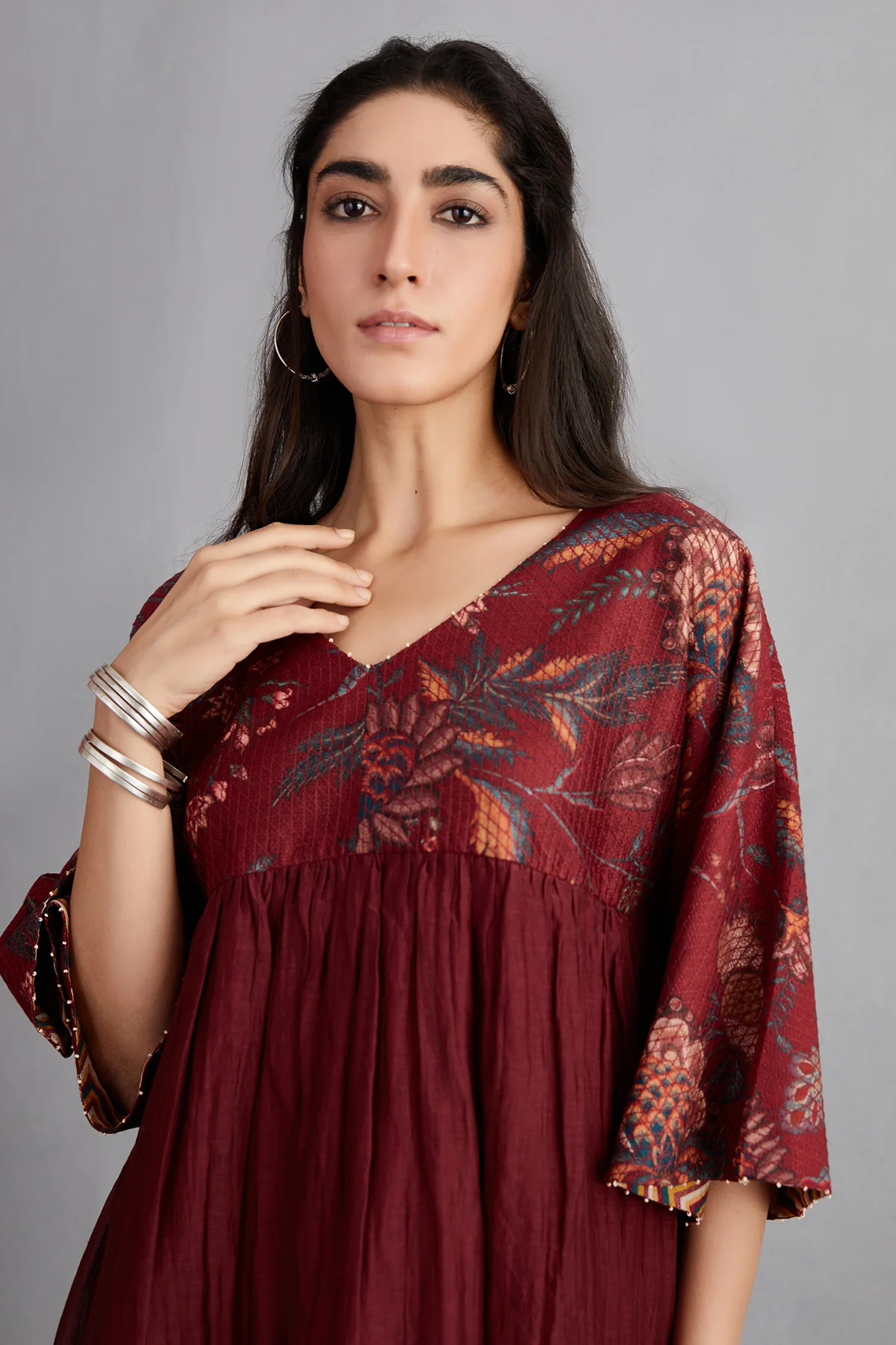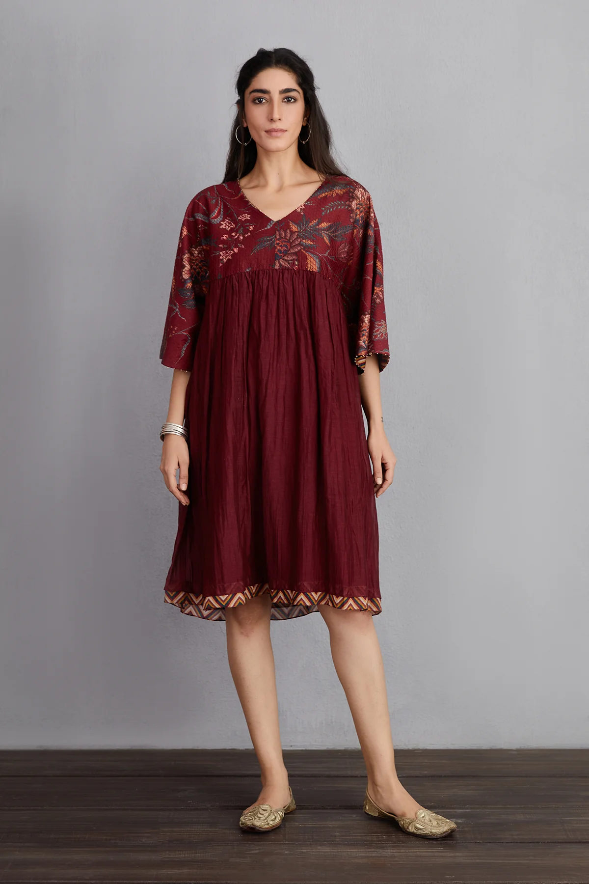 Look stylish and vibrant in this gorgeous Sanobar Lolita Dress. Crafted from premium handwoven Chanderi and Cotton Silk, this dress is designed to ensure comfort and a perfect fit. Its eye-catching Wine hue is sure to make you stand out from the crowd.